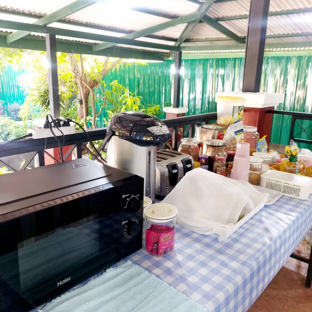 Du vil få 3 måltider om dagen på hverdager, og 2 i helgene. Alle måltidene er hjemmelagde, vegetarvennlige og blir servert på senteret der du bor. Typisk serveres det Thai-retter med ris eller nudler, og grønnsaker. Tidvis lages det kjøttretter, samt dessert med sesongbasert frukt. Har du diettrestriksjoner er det viktig at du gir beskjed om dette, men det er da viktig at du er klar over at du eventuelt vil måtte supplere for egen kostnad. Vann, kaffe og te er gratis tilgjengelig på senteret.